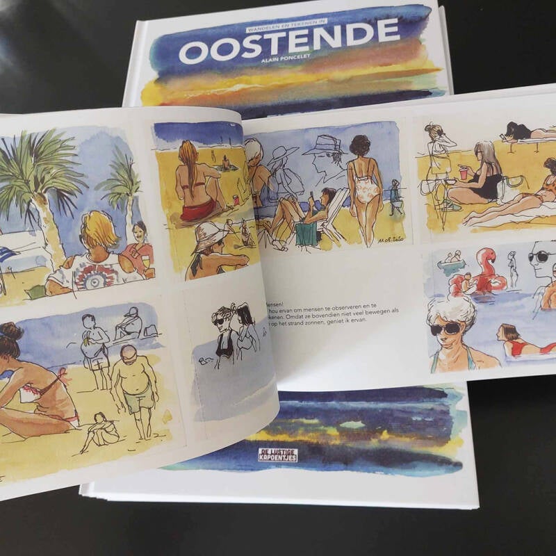 Alain Poncelet is een graag geziene gast op de jaarlijkse stripbeurs van Oostende. Deze artiest vertoeft graag in onze Koningin der Badsteden en tekent er dikwijls in zijn schetsboek. Die impressies van Oostende bundelde hij in een fraai kijk- en leesboekje dat hij samen met De Lustige Kapoentjes uitgaf. Burgemeester John Crombez schreef een voorwoord van deze unieke uitgave!